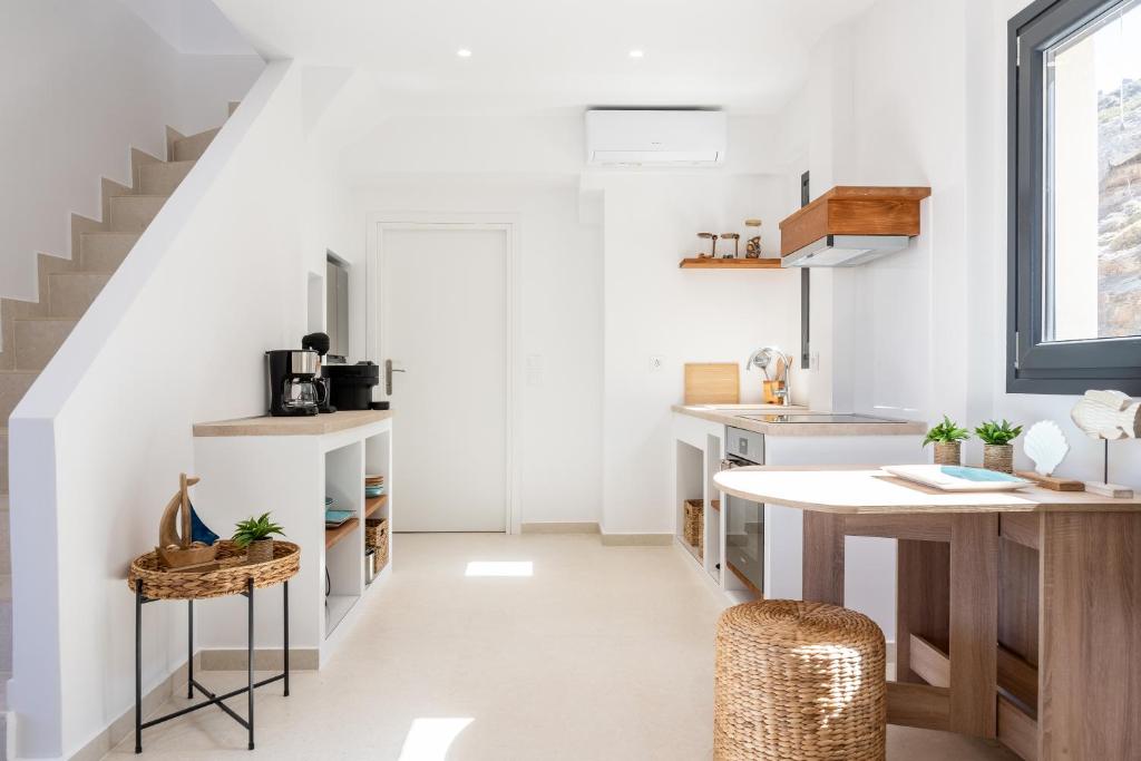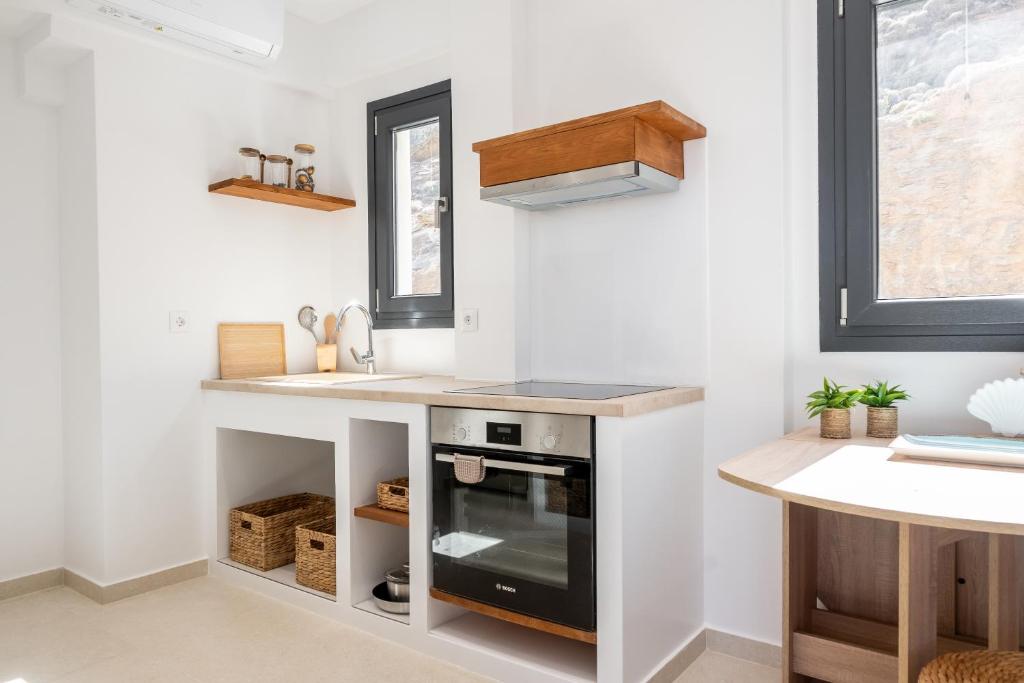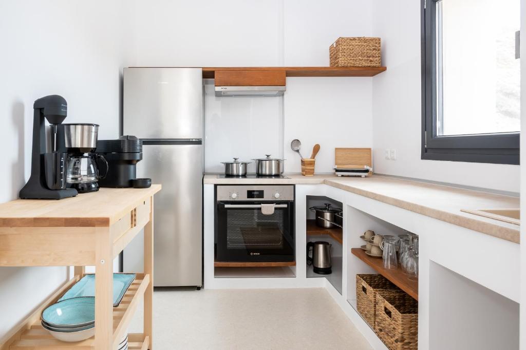 Each residence features a spacious living room, modern bathrooms with showers, a kitchen, and private outdoor areas. It is fully equipped with all necessary amenities, electrical and electronic appliances, to provide a comfortable and luxurious stay. The kitchens are equipped with an oven with hobs, a large refrigerator, a Nespresso coffee machine, and a microwave oven. Guests can relax in the spacious, tastefully decorated living room or enjoy the sea view from the private balcony of each residence.