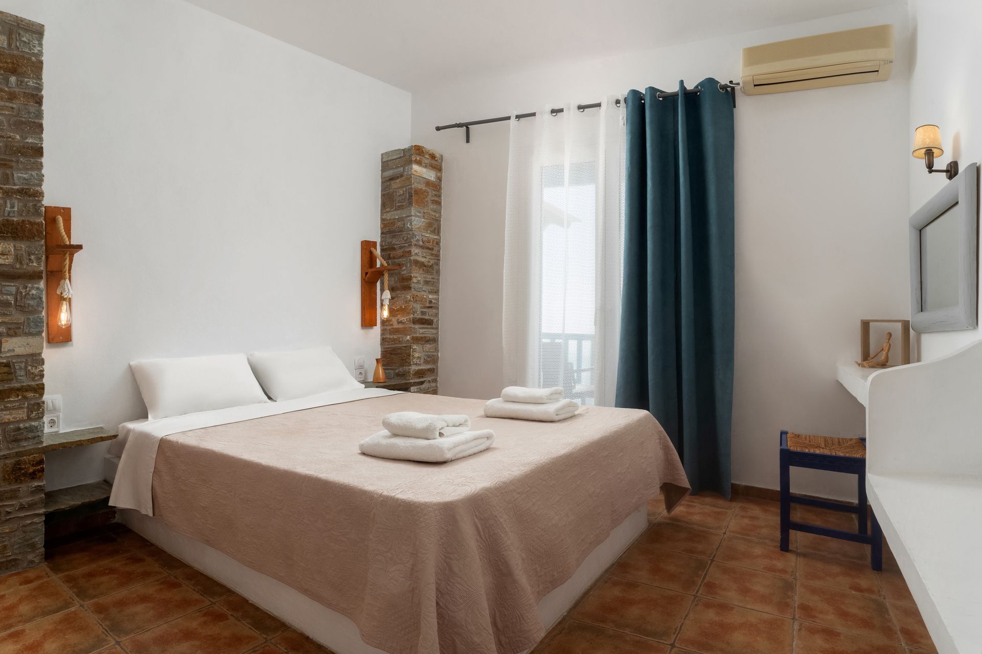 Anemos Sea View is a welcoming holiday apartment complex in the picturesque Iroon area of Batsi on Andros island. Perched above the Aegean coastline, every room and apartment offers unobstructed views of the sea and the bay of Batsi.