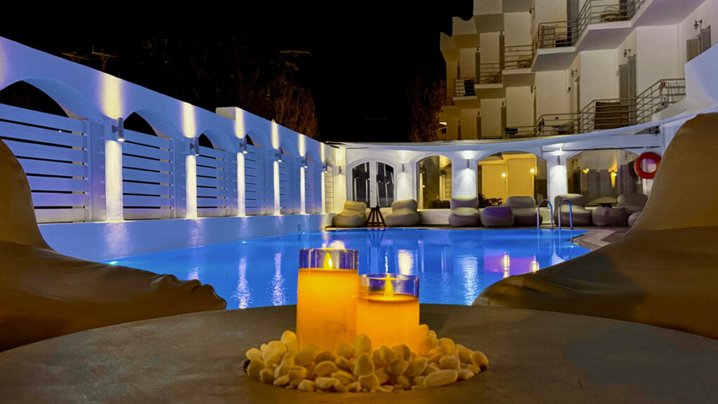 Our renovated hotel offers many facilities and amenities to our guests. You can swim and relax in our swimming pool while enjoying your coffee. Moreover, you can try our snacks and unique cocktails. Finally, our hotel has a private beach with free sunbeds and umbrellas for our guests.