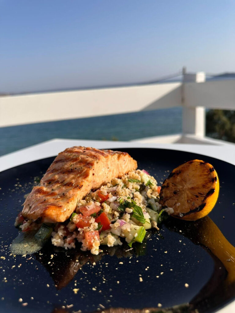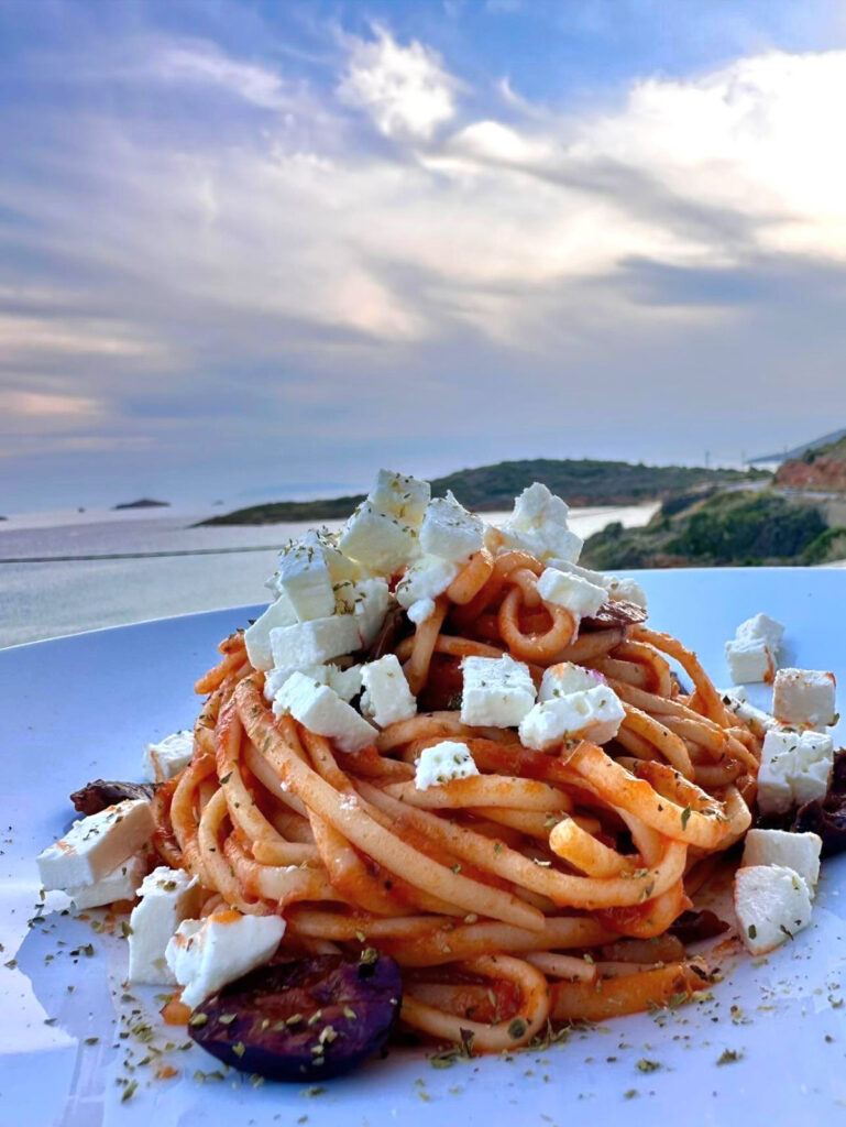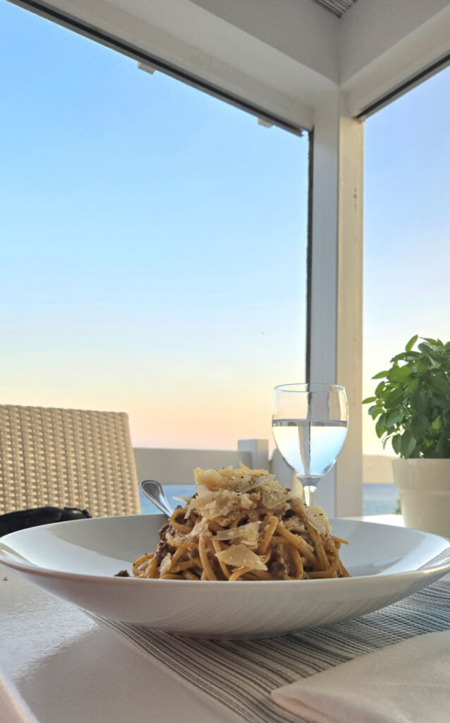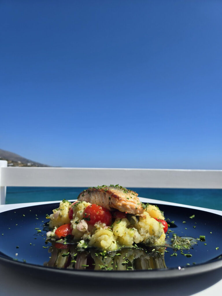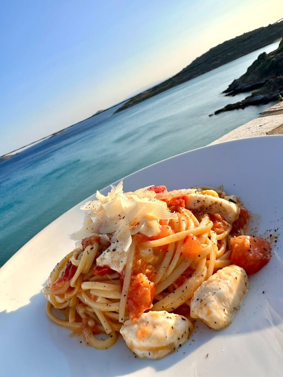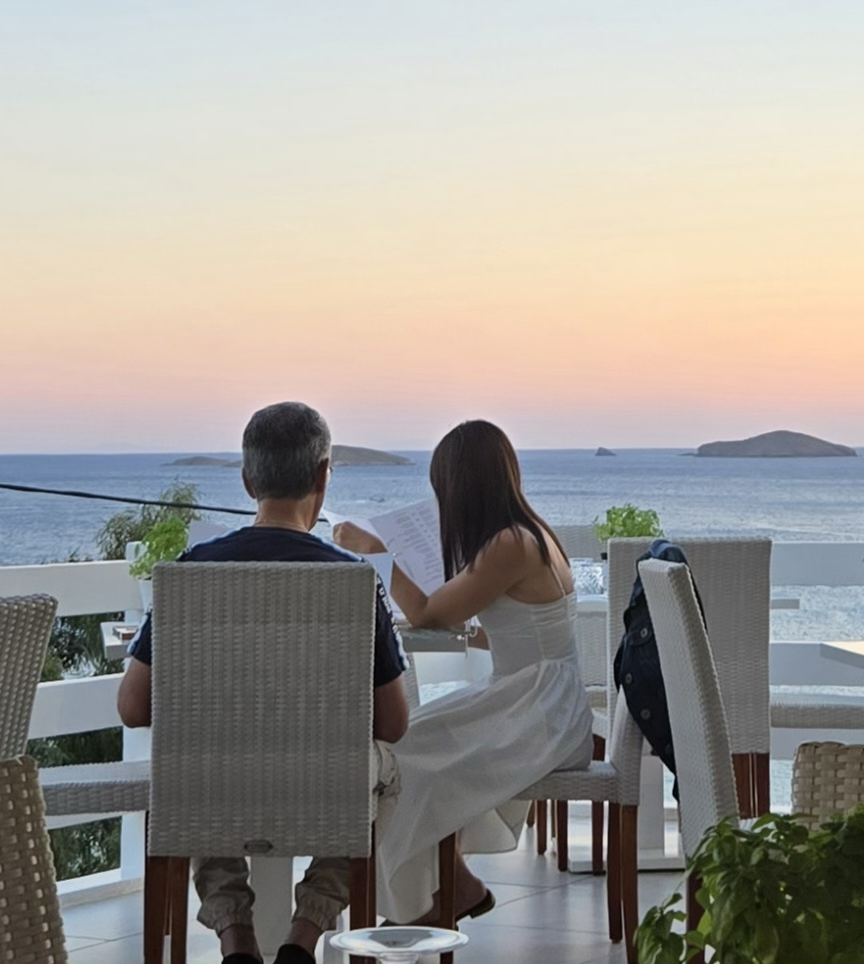 Francesco Restaurant is located in Kypri, within the grounds of Hotel Perrakis, right above the sea and on the main road between Gavrio and Batsi. The terrace overlooking the Aegean creates the perfect setting for a relaxed lunch or dinner, whether you’ve just arrived on the island or you’re returning from the beach. Generous portions, well-balanced flavours and a warm atmosphere have made it one of the favourite dining spots in the wider Gavrio – Kypri area.