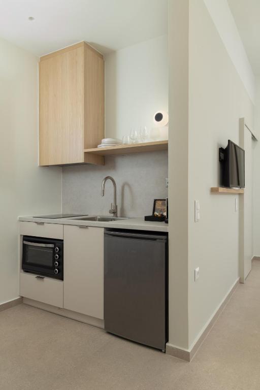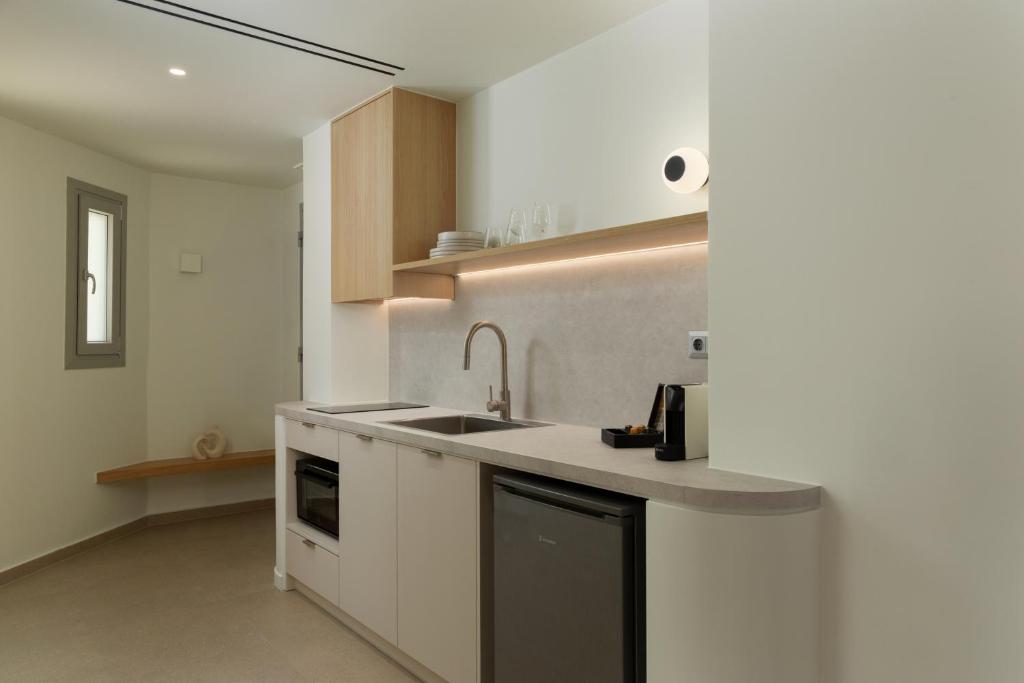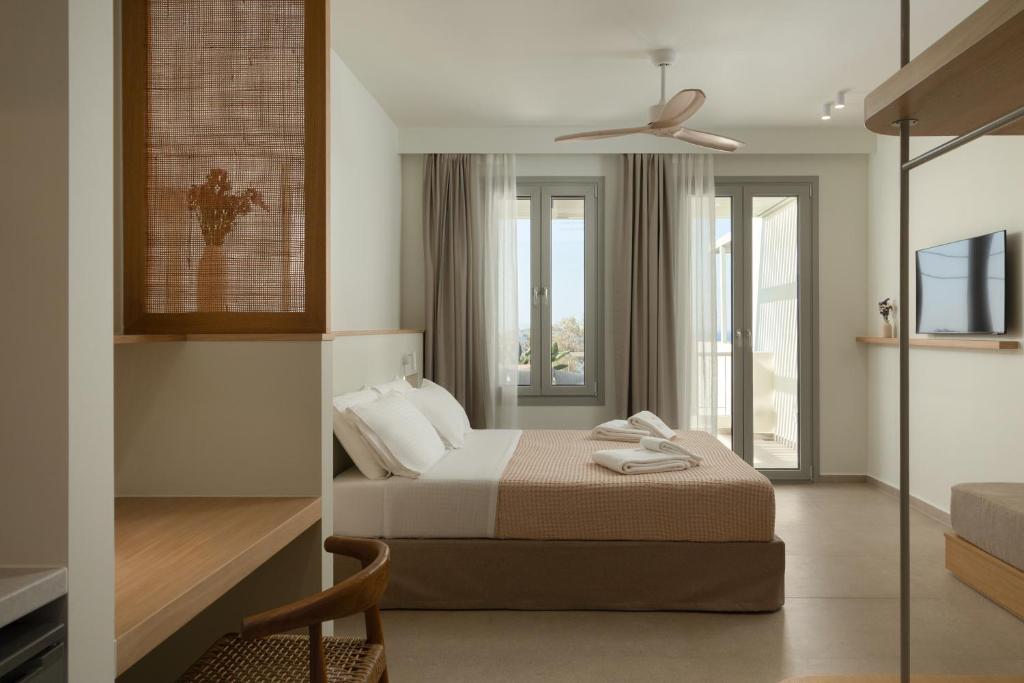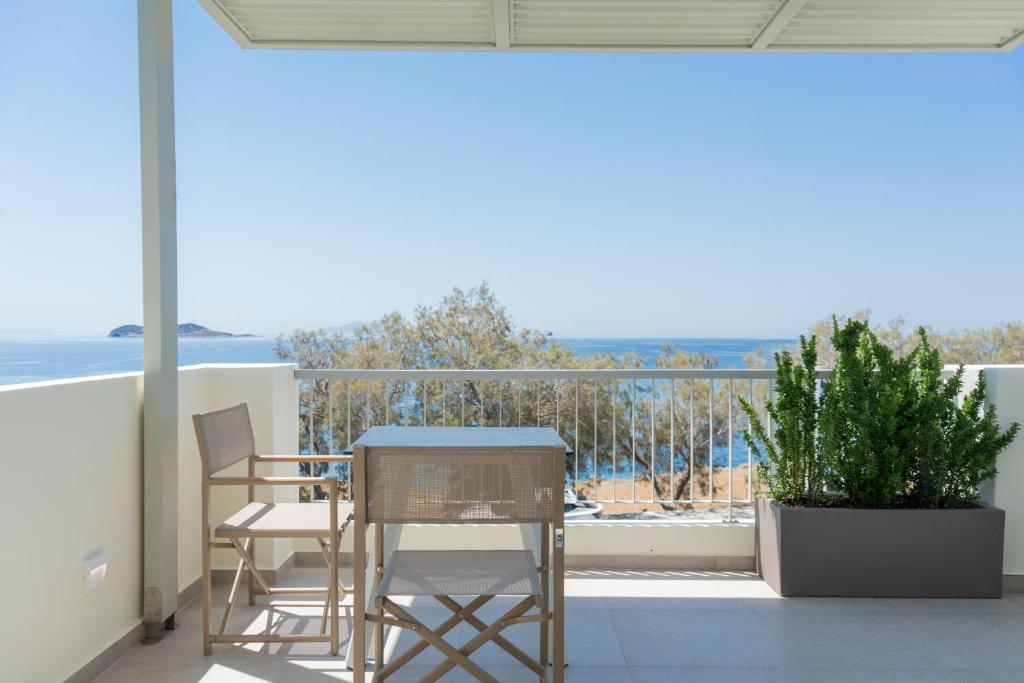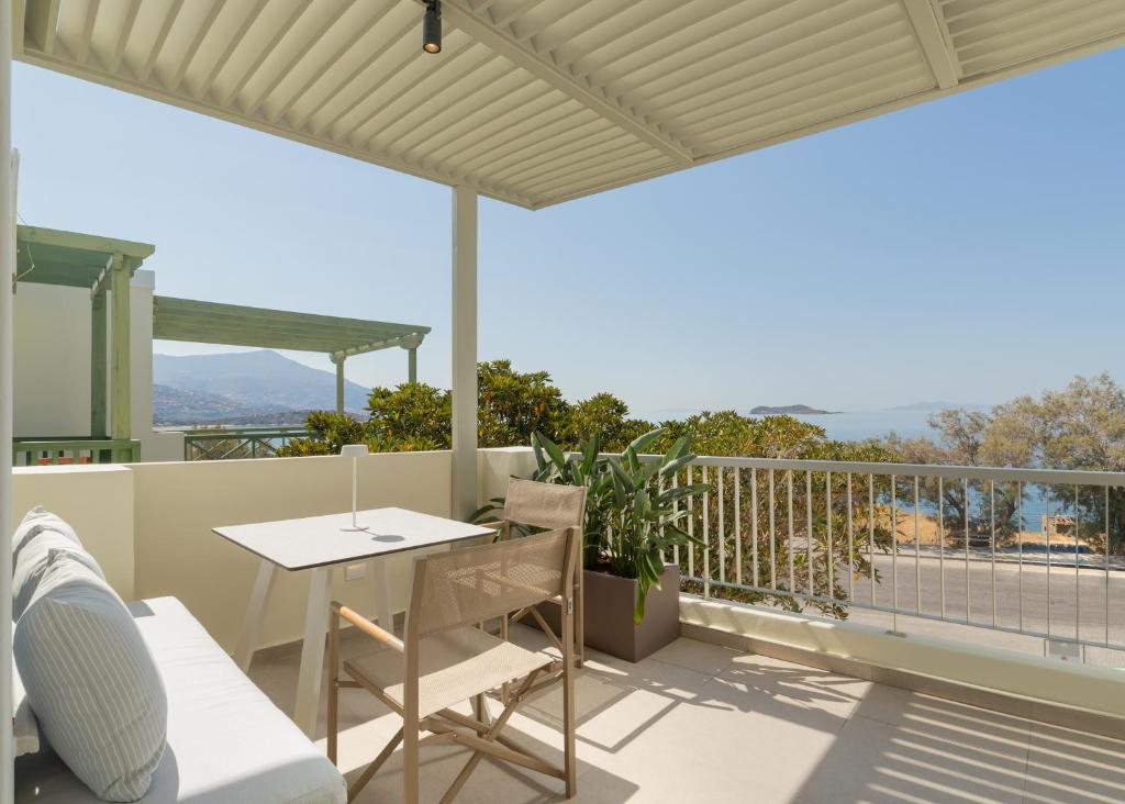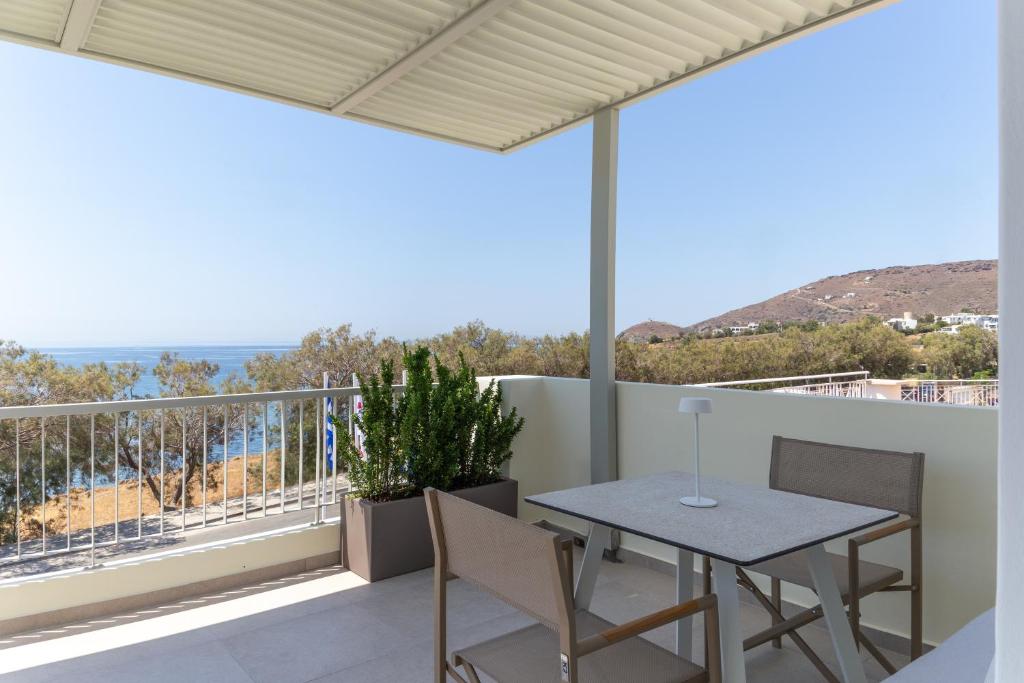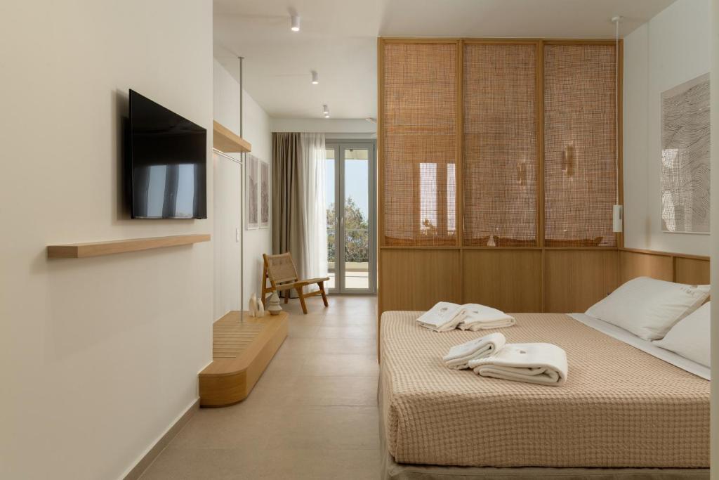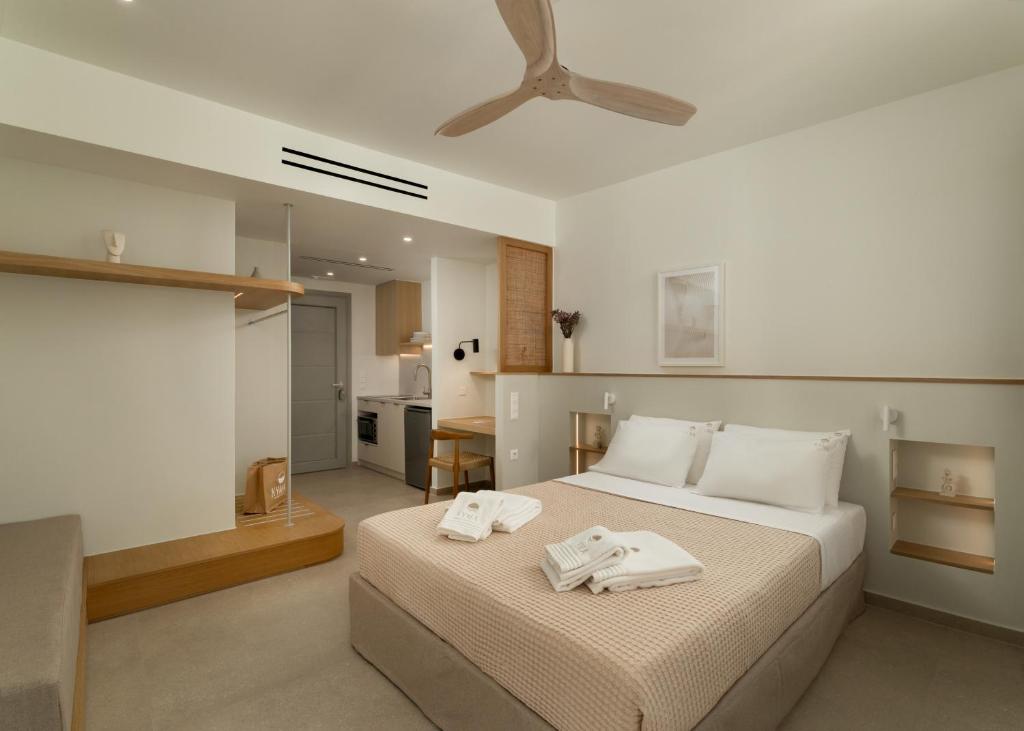Each suite is carefully curated, with minimalist design, earthy tones and attention to detail. They feature a fully equipped kitchenette, comfortable living areas, quality bedding, private balconies with sea or garden views and high–speed Wi-Fi, creating a space that feels like your own island home – just with more elegance. With only four suites in total, the complex offers a sense of privacy, premium comfort and discreet service.