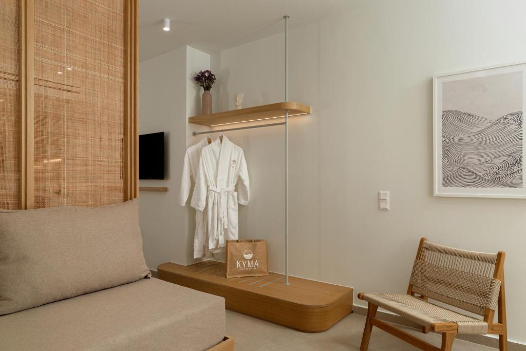The philosophy of Kyma Suites is that real luxury lies in the small, meaningful details: the sound of the waves from your balcony, slow mornings next to the sea, and sunsets over the port of Gavrio. With easy access to the beaches of the area, as well as the tavernas and cafés of the port, it is an ideal base for exploring Andros, while always returning to a place that feels warm, private and effortlessly chic.