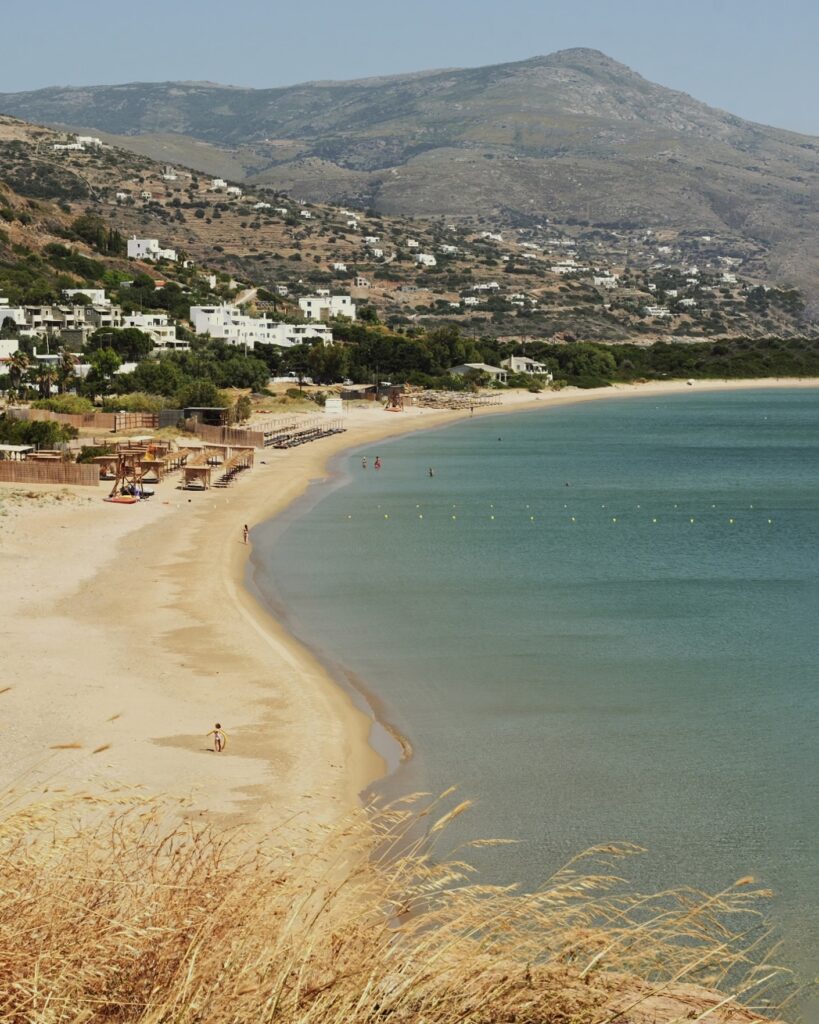 toπos Andros is set right on Agios Petros Beach, between Gavrio and Batsi, on one of the longest sandy beaches of Andros. More than just a beach bar or restaurant, it feels like a summer “meeting point” where sea, light and music come together – from the first swim of the day to late-night drinks by the water.